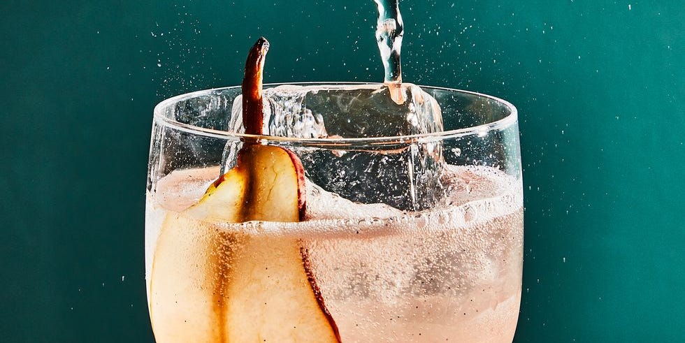 Receita de Mocktail de Spritzer de Pera Vermelha com Vinagre de Maçã Desfrutar de uma bebida refrescante e saudável é